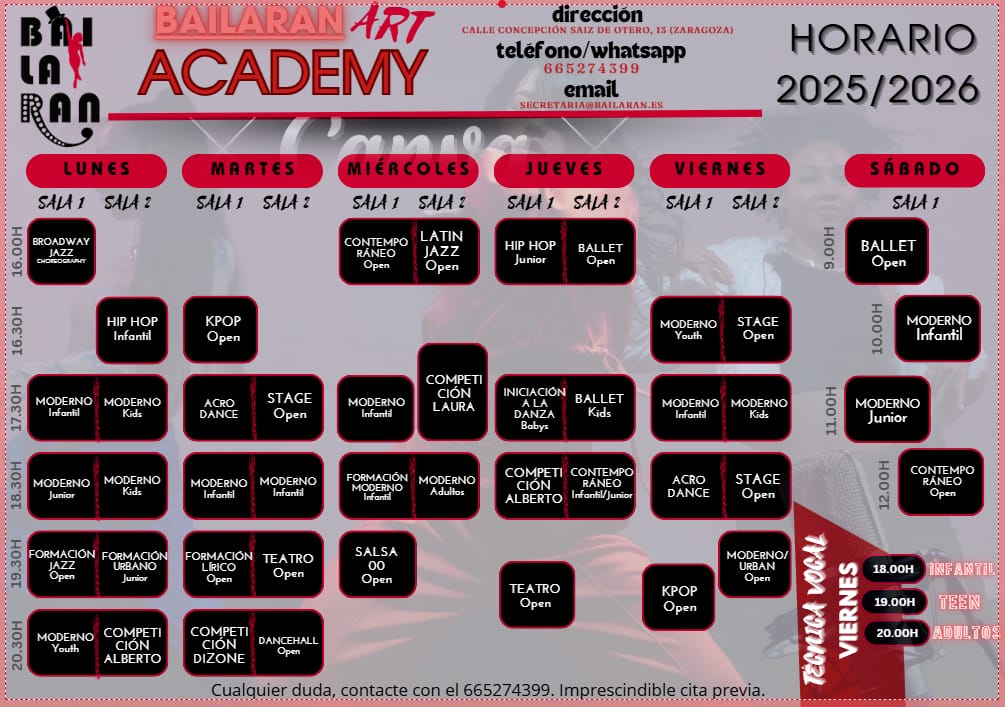 Calle Concepción Saiz de Otero Nº 13 (cerca de Gran Casa) - Teléfonos de contacto: 976 78 46 53 / 665 27 43 99 - secretaria@bailaran.es